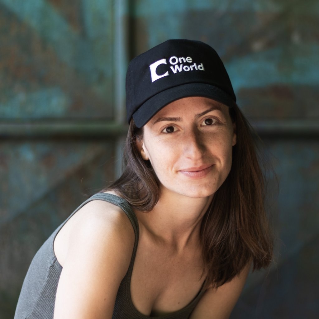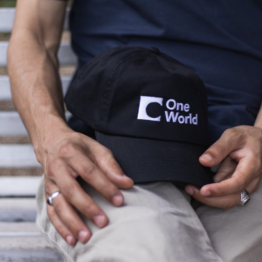 Černá unisex kšiltovka s bílou výšivkou One World.