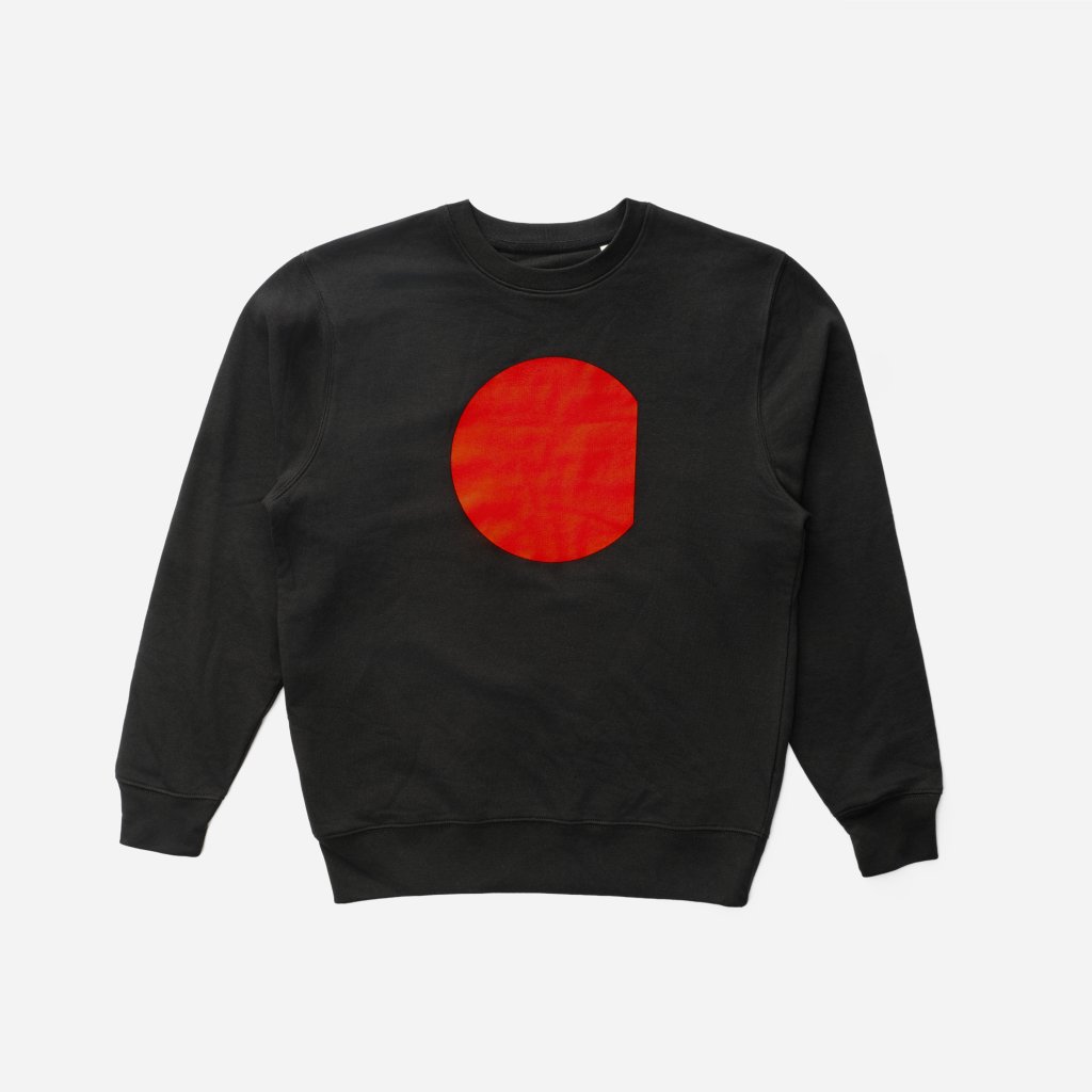 Černá unisex mikina s červeným logem Jednoho světa. Materiál: 85 % organická bavlna, 15 % recyklovaný polyester