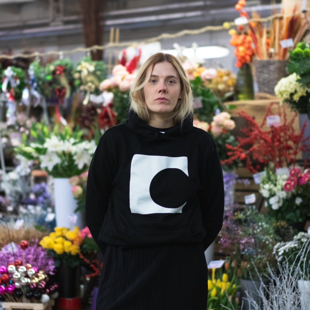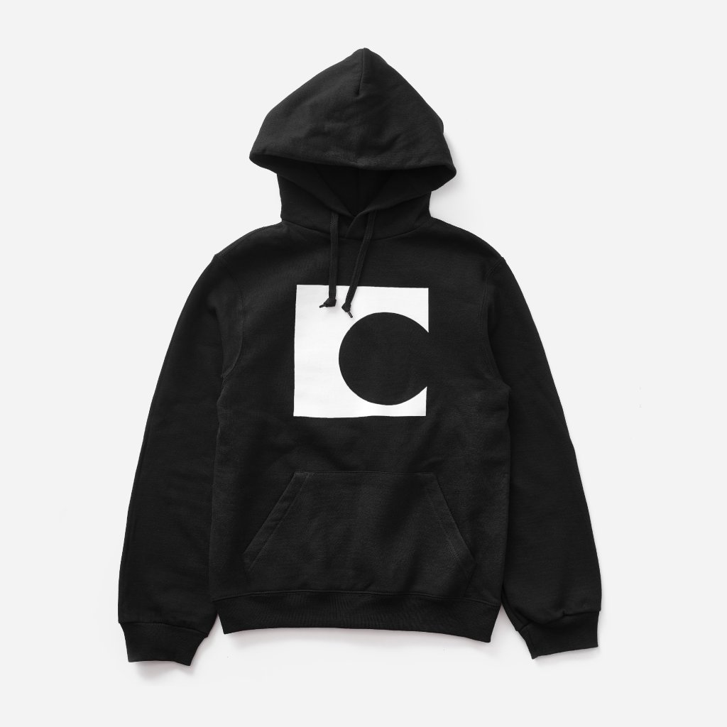 Černá unisex mikina s kapsou a kapucí ve vizuálu Jednoho světa.