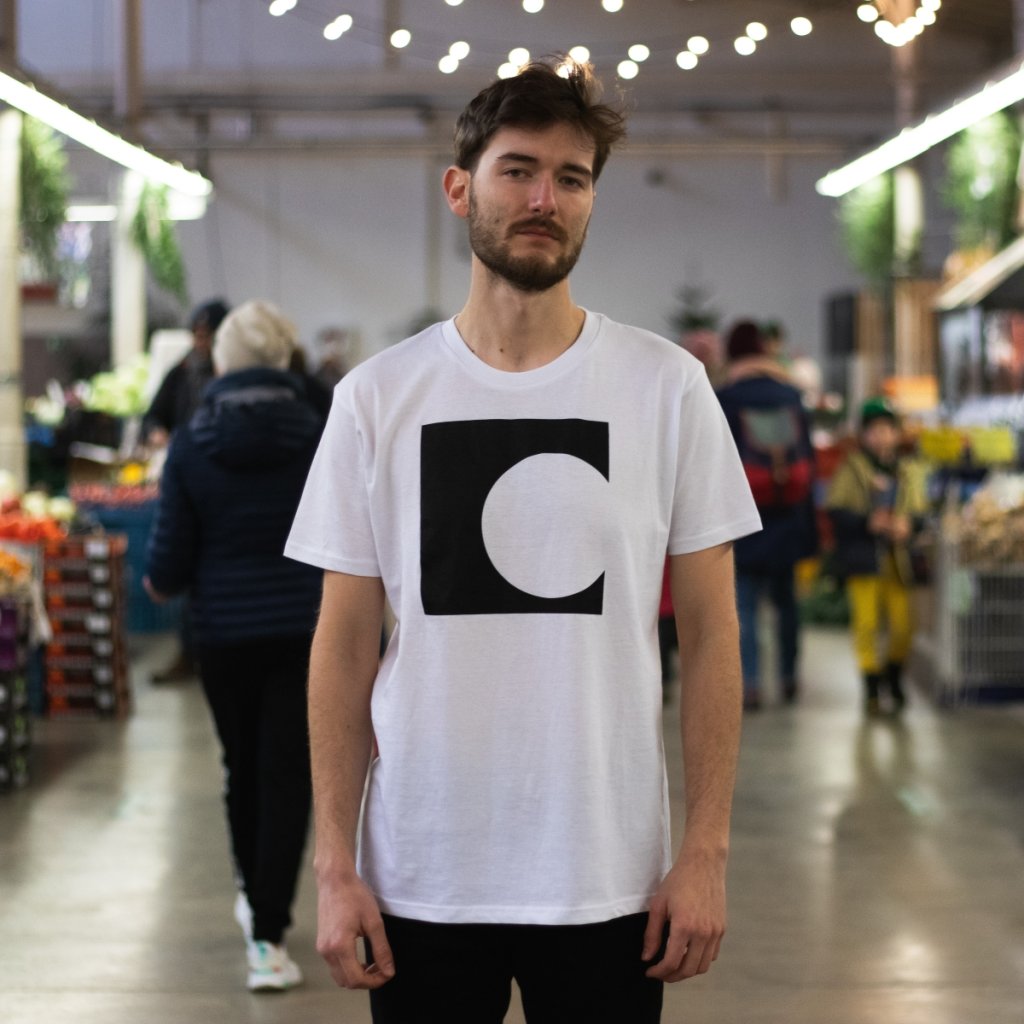 Bílé unisex triko s černým logem Jednoho světa.