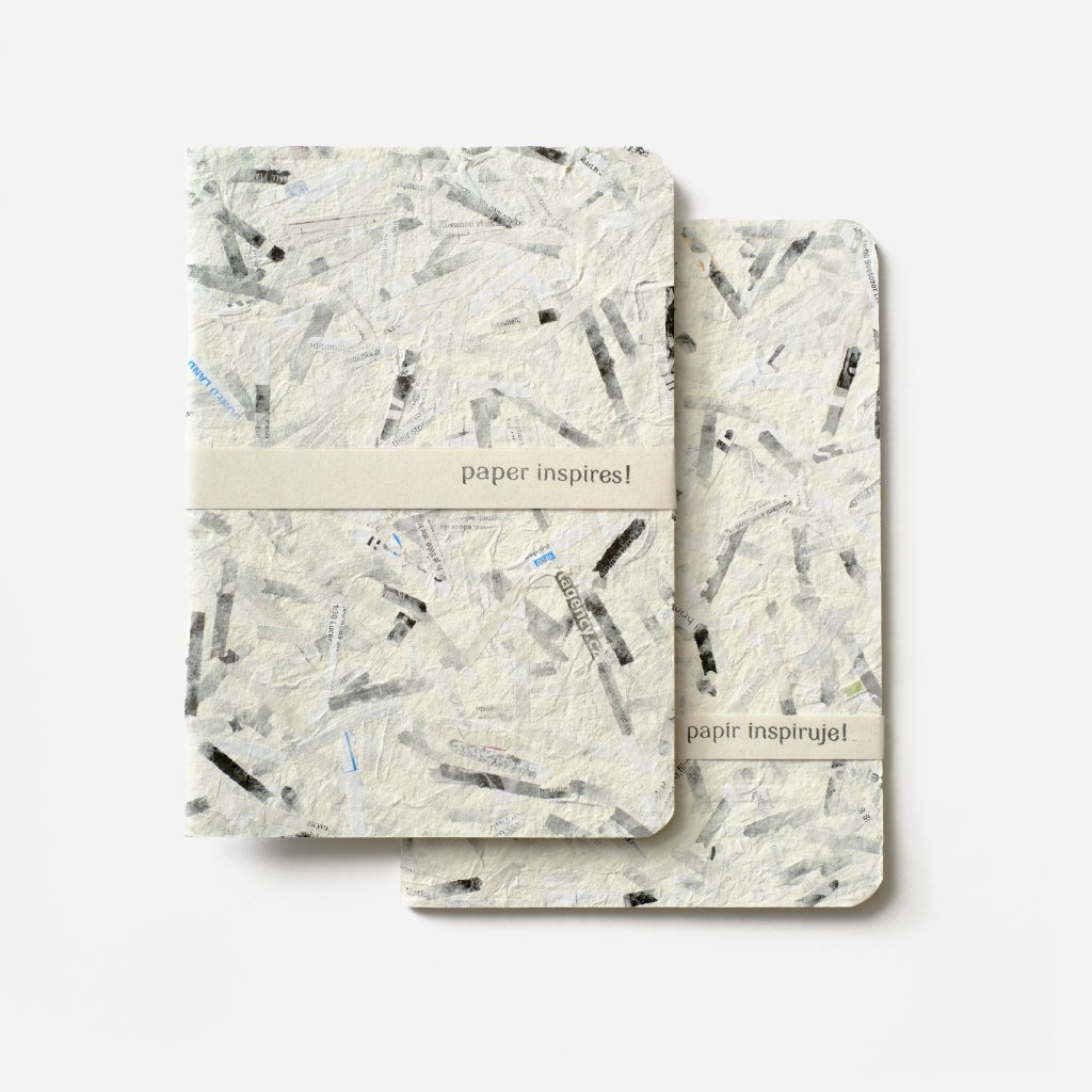 Ruční výrobek chráněného pracoviště Lemniskáta. Tento sešit je vytvořen z papíru z netradičních materiálů (len, bavlna, džíny, moruše, sloní, koňský, oslí, nosorožčí a zebří trus), ručně vyráběného v rodinné manufaktuře Papyrea.